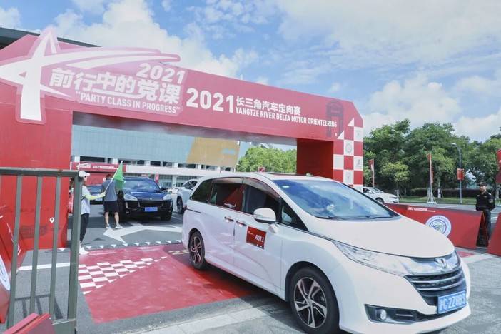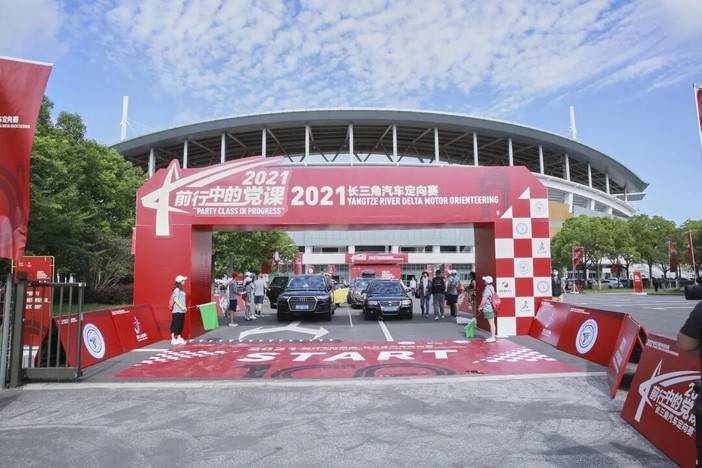 7月19日,“前行中的党课”2021长三角汽车定向赛在金山区体育中心开赛。本次赛事共吸引沪浙两地100辆车参与。