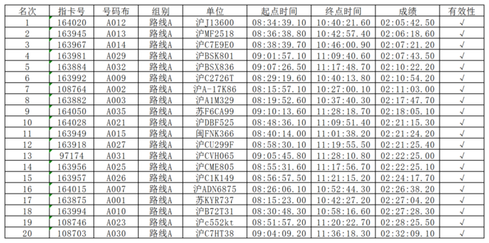 #路线A前20名成绩公示 #