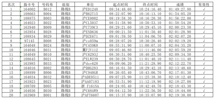 #路线B前20名成绩公示 #